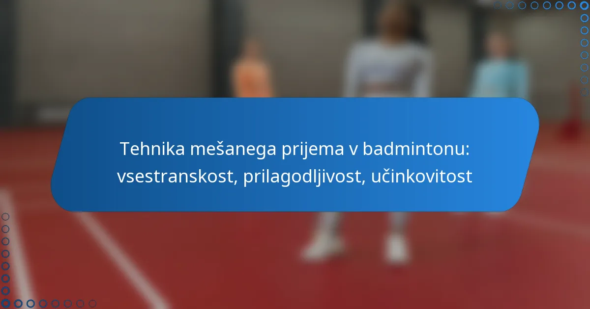Tehnika mešanega prijema v badmintonu je dinamičen pristop, ki združuje forehand in backhand prijeme, kar igralcem omogoča večjo vsestranskost in prilagodljivost na igrišču. Z obvladovanjem tega prijema lahko športniki izboljšajo raznolikost svojih udarcev in obrambne sposobnosti, kar vodi do boljše splošne učinkovitosti med tekmami. Ta tehnika je ključna za hitre prilagoditve in učinkovito pokritost igrišča, kar jo dela dragoceno za konkurenčne igralce.